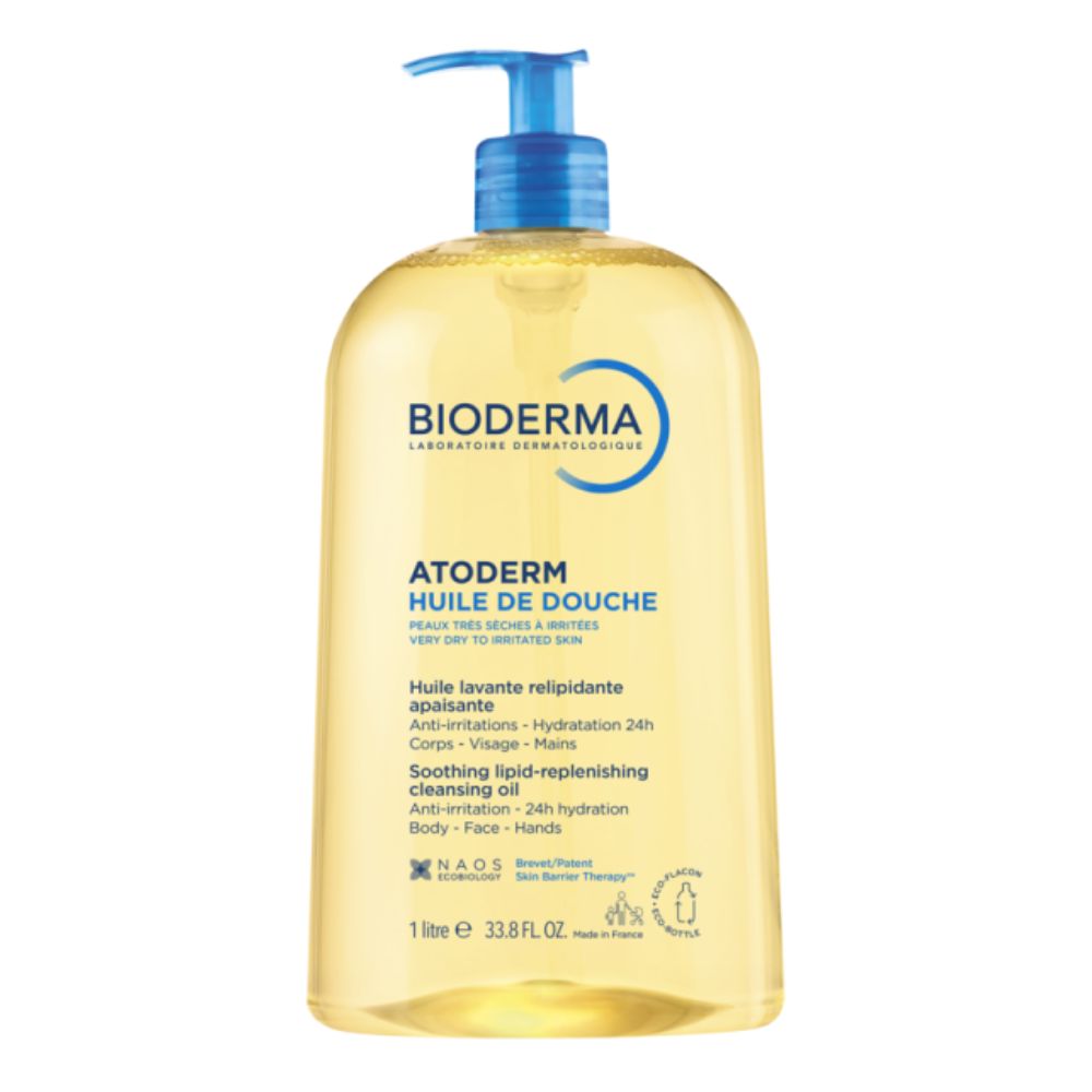 - Atoderm Aceite de Ducha calma y protege de las agresiones externas gracias a su exclusiva fórmula compuesta por biolípidos vegetales, vitamina B3 (PP) y la patente Barrier Skin Therapy. (1) y (2) Los biolípidos vegetales* alivian la sensación de tirantez y aumentan la resistencia de la piel al reconstruir la película protectora de la piel.