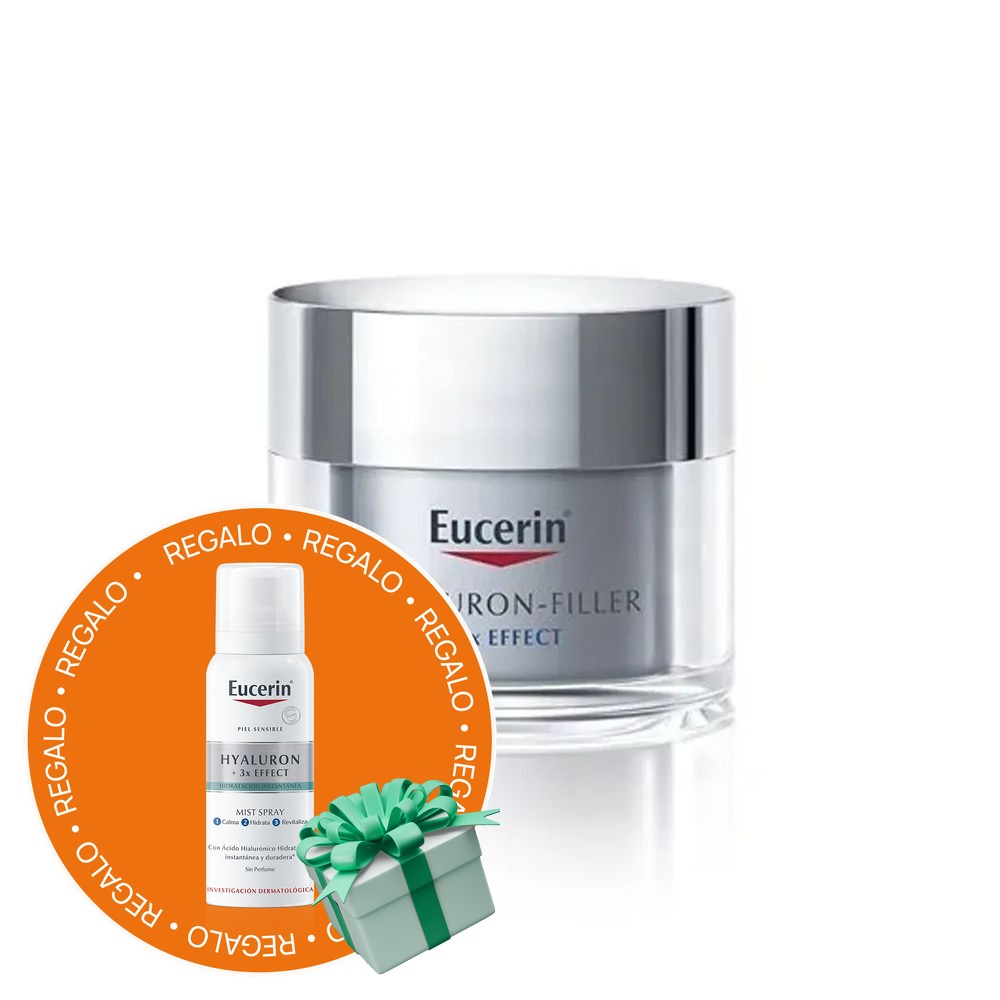 La mezcla única de Eucerin de Ácido Hialurónico de alto y bajo peso molecular, Glicina Saponina y Enoxolona, ofrece un enfoque específico para ayudar a rellenar visiblemente incluso las arrugas profundas. El Ácido Hialurónico de alto peso molecular mejora la hidratación y suaviza las capas más externas de la piel, mientras que el Ácido Hialurónico de bajo peso molecular, que es 40 veces más pequeño1, penetra más en las capas epidérmicas de la piel, donde se originan las arrugas profundas. El antioxidante Glicina Saponina, favorece la producción de Ácido Hialurónico en la capa dérmica, donde se forman las arrugas profundas, y protege de los radicales libres. La Enoxolona protege de la degradación al Ácido Hialurónico propio de la piel y el Dexpantenol apoya el proceso de regeneración de la piel durante la noche.