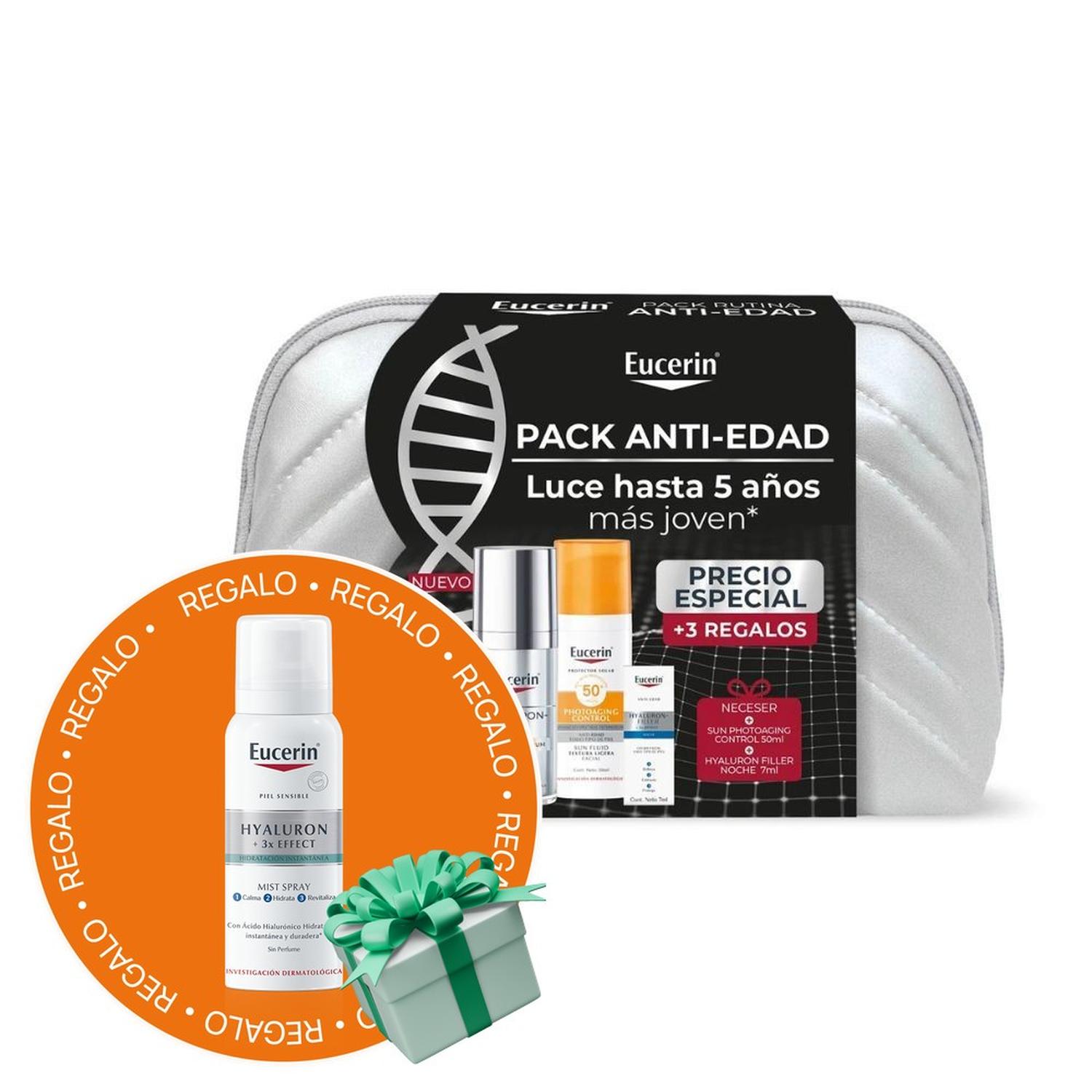 Pack antiedad ideal para el cuidado diario de la piel. Contiene un sérum con acción epigenética que mejora la firmeza y reduce arrugas, un protector solar FPS50 que previene el fotoenvejecimiento y una crema de noche con ácido hialurónico que regenera e hidrata intensamente mientras duermes.