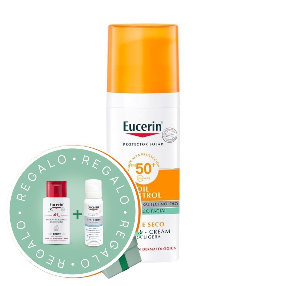 Eucerin Sun Gel-Crema Oil Control Toque Seco FPS 50+ es un protector solar de uso diario con un factor de protección solar muy alto, formulado específicamente para la piel facial grasa y propensa al acné. Combina protección de nivel superior contra los daños de la piel inducidos por el sol y una solución activa para mejorar el estado de la piel.