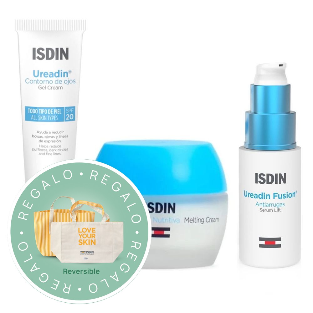 Este pack de ISDIN ofrece una rutina completa para el cuidado de la piel con productos que hidratan, regeneran y previenen los signos del envejecimiento. Combina un tratamiento para el contorno de ojos, una crema nutritiva facial y un serum antiarrugas para lograr una piel más lisa, firme y luminosa.