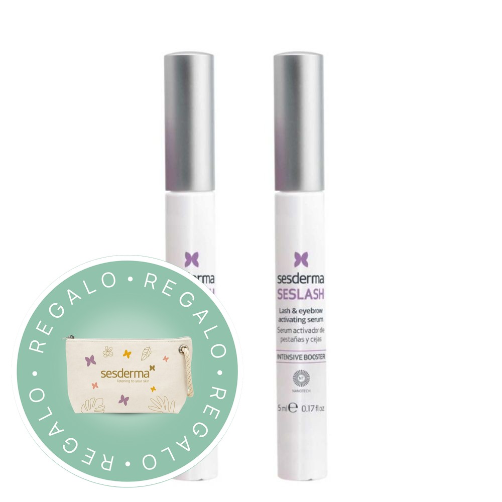 Doble tratamiento con Sesderma Seslash para estimular el crecimiento de pestañas y cejas. Fórmula con factores de crecimiento, péptidos y ácido hialurónico que fortalece, hidrata y mejora la densidad. Resultados visibles desde la semana 3
