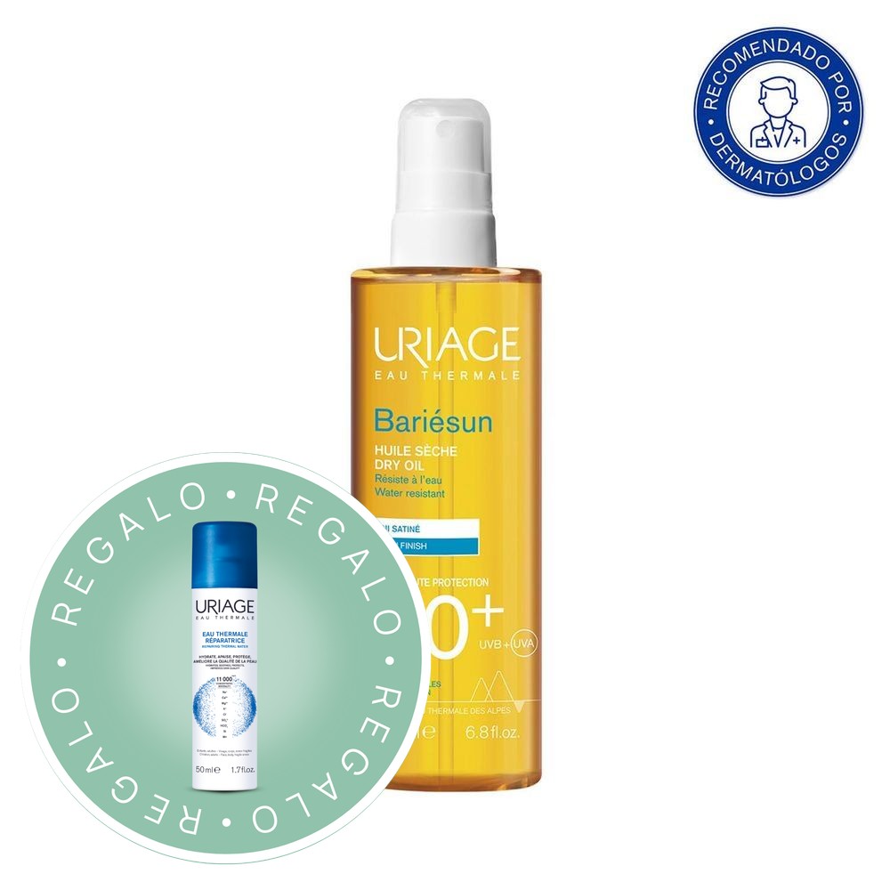 ¡Consigue una protección solar de lujo con un acabado perfecto! Uriage Bariésun Aceite Toque Seco SPF50+ es un aceite solar en spray de 200 ml que ofrece protección muy alta contra rayos UVA/UVB con una textura seca y no grasa. Formulado con Agua Termal de los Alpes franceses, vitamina E y aceites vegetales nutritivos, hidrata, nutre la piel y realza el bronceado mientras es resistente al agua. Ideal para cuerpo y pelo, su aplicación es fácil y deja la piel con un brillo saludable sin sensación pegajosa. Protege y cuida tu piel con la eficacia de la dermatología francesa.