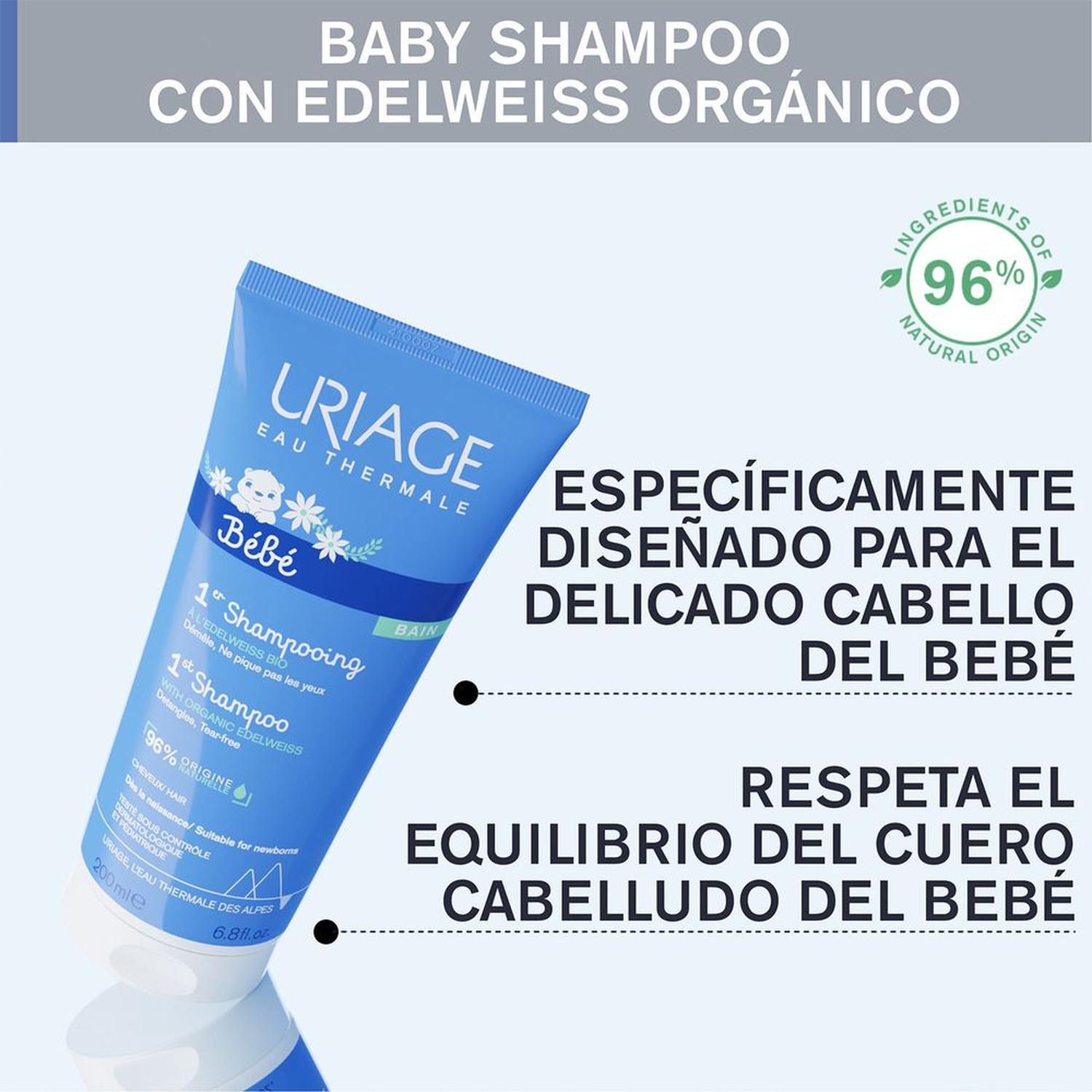 ¡Cuida la delicada piel de tu bebé con la suavidad que merece! El URIAGE BEBE 1ER SHAMPOO es un champú líquido extra suave sin jabón, formulado específicamente para limpiar con total delicadeza el cuero cabelludo y el cabello de los más pequeños. Enriquecido con Agua Termal de Uriage, tensioactivos suaves y glicerina, limpia profundamente sin irritar ni resecar, respetando incluso las pieles más sensibles. Su fórmula hipoalergénica es ideal para el uso diario, dejando el cabello suave y manejable. Confía en la dermatología francesa para el primer shampoo de tu bebé.