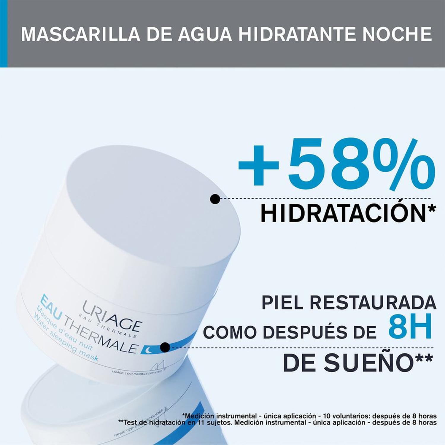 ¡Despierta con una piel radiante e hidratada! La Mascarilla de Noche Uriage Eau Thermale es un tratamiento ultrahidratante de uso nocturno que regenera y recarga la piel en agua mientras duermes. Formulada con Agua Termal de los Alpes franceses, ácido hialurónico y extracto de edelweiss, esta crema de textura jugosa actúa con un ‘efecto dormir 8h’, devolviendo luminosidad, suavidad y una sensación de descanso profundo a la piel al despertar. Ideal para todo tipo de pieles, incluso las más sensibles. Tu ritual de belleza nocturno esencial para una hidratación profunda y regeneración intensiva.