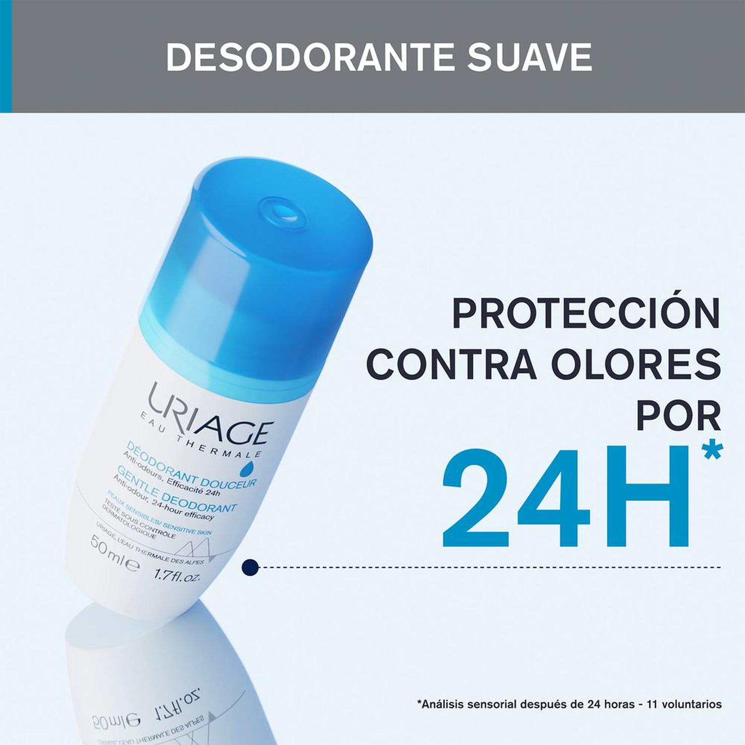 ¡Descubre la suavidad que respeta tu piel! El URIAGE GENTLE DEODORANT ROLL-ON 50ML es un desodorante suave formulado específicamente para pieles sensibles. Su innovadora fórmula sin sales de aluminio y sin alcohol neutraliza eficazmente el mal olor durante 24 horas sin bloquear la transpiración natural. Enriquecido con el Agua Termal de Uriage y agentes calmantes, ofrece una textura fresca y no pegajosa que calma la piel incluso después de la depilación. Ideal para una suavidad diaria sin irritaciones. ¡Tu confianza, intacta todo el día!