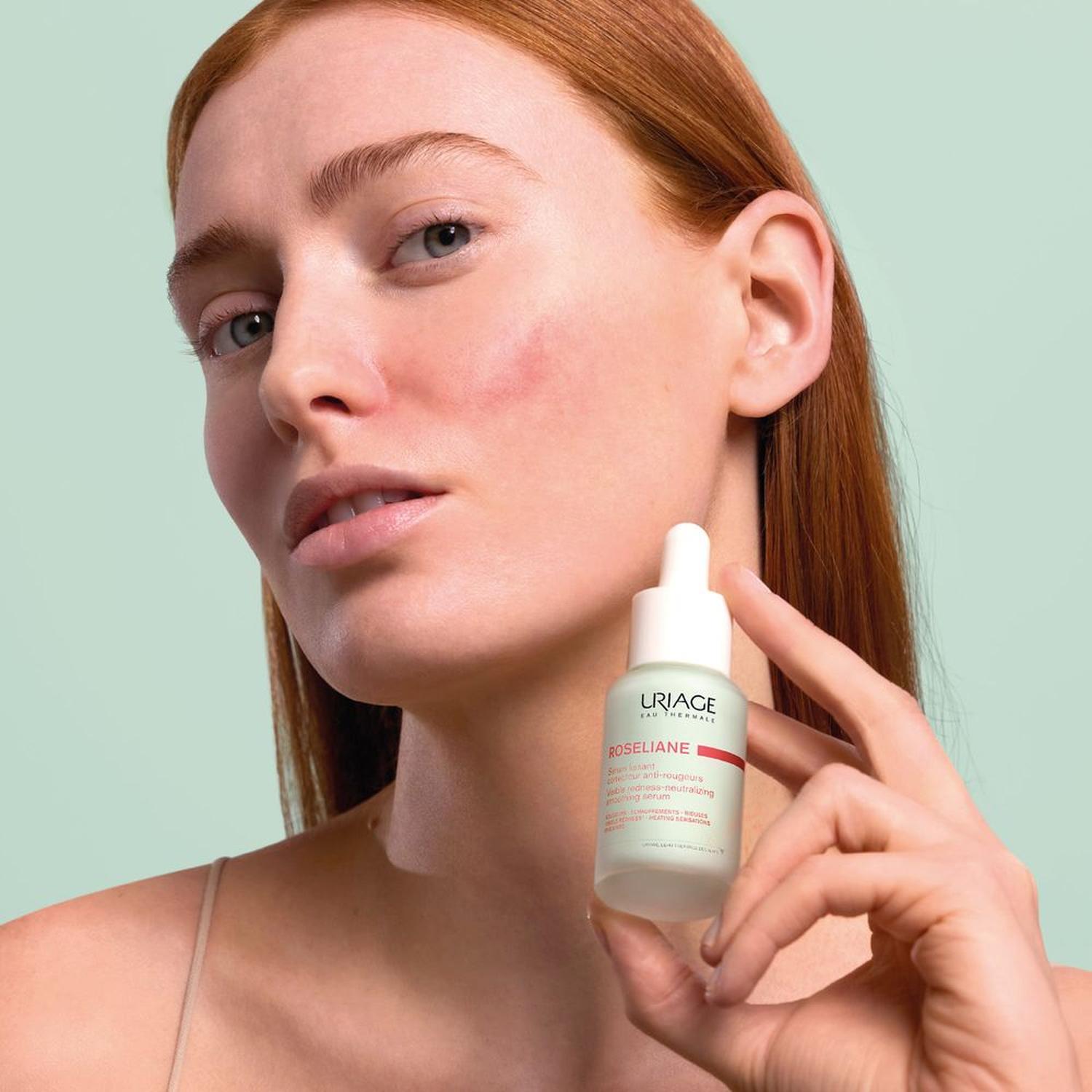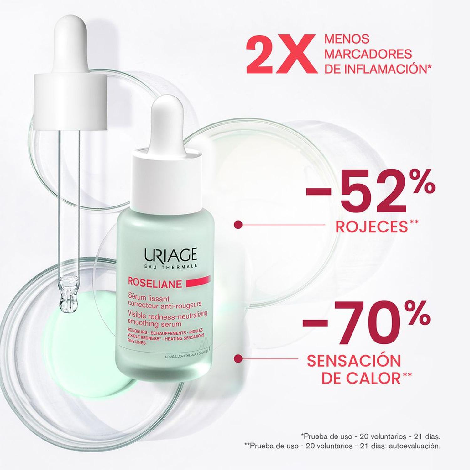 ¡Descubre el poder calmante de los Alpes franceses! El Sérum ROSELIANE de URIAGE es un tratamiento concentrado anti-rojeces en frasco de 30 ml, formulado específicamente para pieles sensibles y reactivas. Su textura fresca y ligera de rápida absorción refuerza la microcirculación cutánea, calma al instante y reduce la reactividad gracias a activos innovadores como Extracto de Ginseng, Escualano y la exclusiva Agua Termal de Uriage. Ideal para aplicar mañana y noche, ofrece un confort inmediato, reduce las rojeces difusas y fortalece la barrera de la piel. ¡Consigue una piel visiblemente más tranquila y resistente con este sérum dermatológico francés!